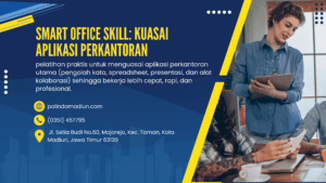 Kursus Komputer Office Bersertifikat di Madiun mengajarkan keterampilan praktis menggunakan Microsoft Office aplikasi standar di dunia kerja, bisnis, dan pendidikan. Pelatihan di Polindo Madiun dirancang agar peserta mahir menggunakan Word, Excel, dan PowerPoint secara efektif sesuai kebutuhan industri.