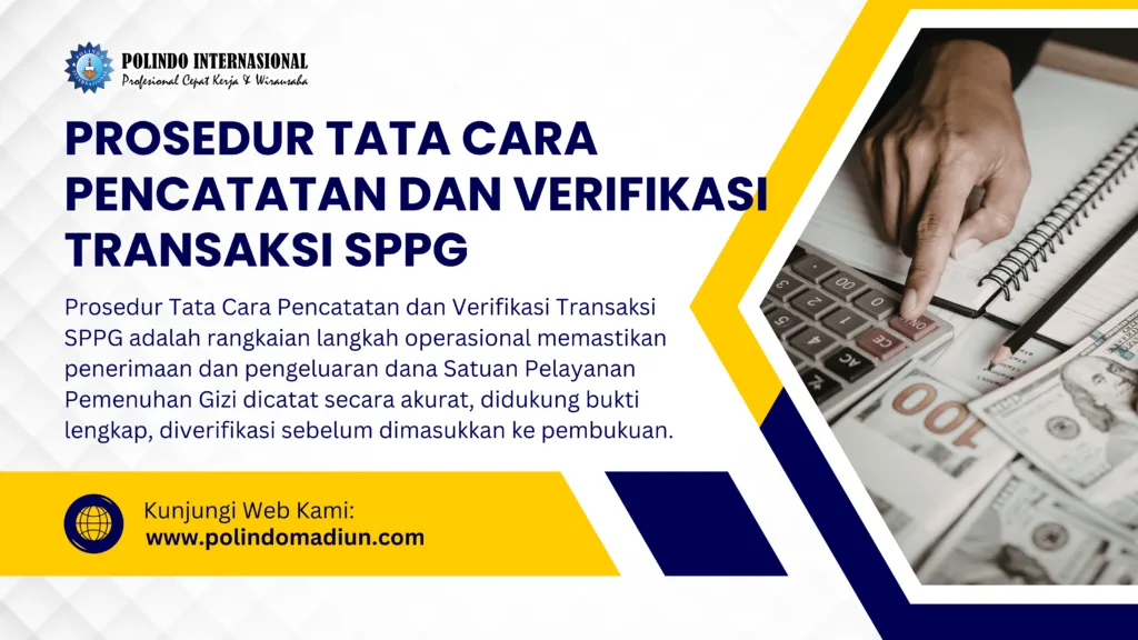 Prosedur pencatatan dan verifikasi transaksi SPPG memastikan setiap penerimaan dan pengeluaran tercatat akurat dan dapat dipertanggungjawabkan. Selain itu prosedur yang