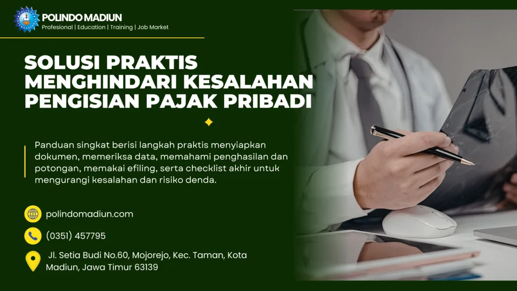 Ikuti kursus intensif pengisian SPT Badan di Polindo Training Center untuk mempelajari solusi praktis menghindari kesalahan pengisian SPT yang sering