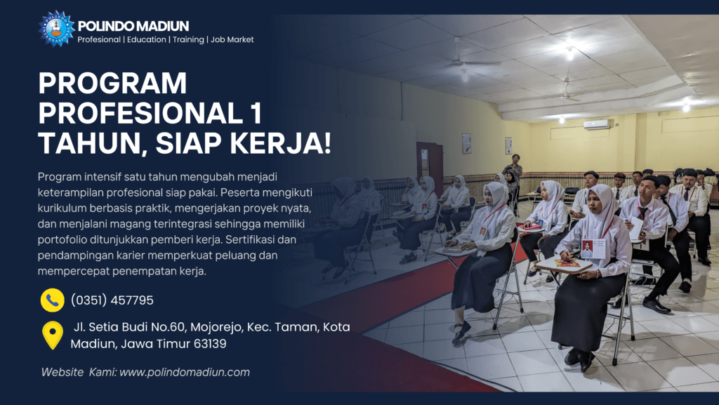 Program profesional satu tahun ini dirancang untuk membantu Anda menguasai keterampilan yang langsung dibutuhkan industri sehingga siap kerja lebih cepat. Selain itu program ini menggabungkan modul praktik intens, proyek nyata, dan magang terstruktur sehingga lulusan memiliki portofolio yang kuat. Dengan demikian peserta tidak hanya belajar teori tetapi juga memperoleh pengalaman kerja yang relevan dan jaringan profesional yang berguna.