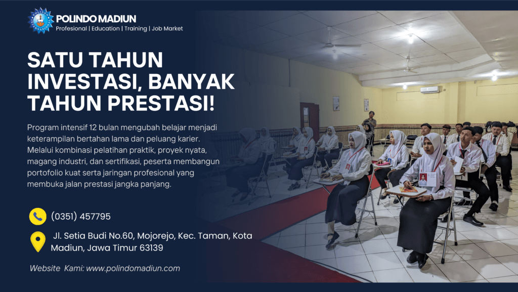 Lokasi Kampus : Kampus Polindo Madiun, Jl. Setia Budi, No. 60, Mojorejo, Kec. Taman, Kota Madiun, Jawa Timur 63139